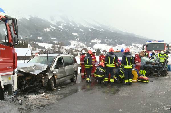Bei Eintreffen der Feuerwehr wurden die Verletzten bereits von Notarzt und Rotem Kreuz erstversorgt. Die Erkundung von Einsatzleiter OBI Wolfgang Hofer ergab, dass sich eine schwer verletzte Person auf der Straßenböschung befand, welche aus dem Fahrzeug, über die Leitschiene geschleudert wurde. Eine weiterer Schwerverletzter befand sich in einem der beiden PKW sowie eine leicht verletzte Person bereits außerhalb des Fahrzeuges. Die Rettung der Verletzen wurde in hervorragender Zusammenarbeit Feuerwehr mit Rotem Kreuz gemeinsam durchgeführt, für die notärztliche Versorgung und den Weitertransport in die Krankenhäuser Schwarzach und Schladming waren auch zwei Hubschrauber im Einsatz. Ein kleiner Hund aus einem der Unfallwracks wurde seitens Feuerwehr in die Obhut des Tierheimes Trieben übergeben. An den beiden PKW aus Ungarn und Deutschland entstand Totalschaden.