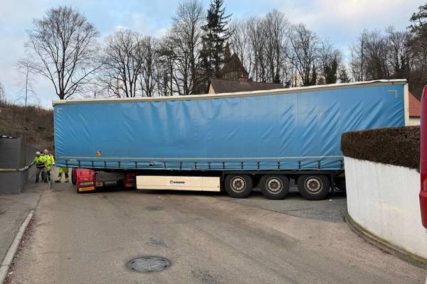 Beim Eintreffen wurde festgestellt, dass ein Sattelschlepper durch sein Navigationsgerät in eine schmale Seitengasse einer Siedlung fehlgeleitet wurde.