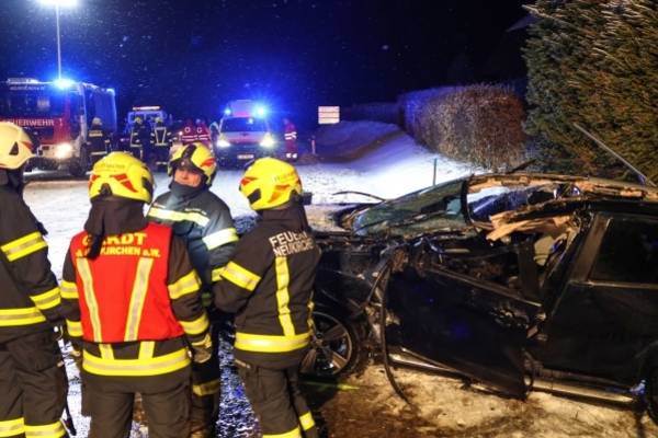 NEUKIRCHEN AM WALDE. Ein schwerer Unfall zwischen einem PKW und einem Schneepflug in Neukirchen am Walde (Bezirk Grieskirchen) am späten Montagabend ging offenbar verhältnismäßig glimpflich aus. Der Unfall ereignete sich bei dichtem Schneetreiben auf der L1176 Wesenstraße kurz vor der Kreuzung mit der L517 Keßlastraße im Gemeindegebiet von Neukirchen am Walde. "Ein 38-Jähriger fuhr mit einem Schneeräumfahrzeug am 15. Jänner 2024 gegen 21:15 Uhr auf der L1176 Wesenstraße von Waldkirchen am Wesen kommend Richtung Neukirchen am Walde. An der Kreuzung zur L517 Keßlastraße räumte er zuerst den rechten Fahrstreifen und schob den Schnee zum Fahrbahnrand. Anschließend fuhr er wieder retour, um auch den Abbiegestreifen vom Schnee befreien zu können. Zu diesem Zeitpunkt kam ein 38-Jähriger aus dem Bezirk Schärding mit seinem PKW ebenfalls auf der L1176 Wesenstraße von Waldkirchen am Wesen kommend und krachte bei Straßenkilometer 7,960, Ortschaftsbereich Untergermating, Gemeinde Neukirchen am Walde, gegen das Heck des Schneepfluges. Dabei wurde der PKW-Lenker unbestimmten Grades verletzt und nach der Erstversorgung in das Klinikum-Passau gebracht. Ein mit ihm durchgeführter Alkotest verlief positiv", berichtet die Polizei. Der Lenker war entgegen erster Angaben zum Glück nicht im schwer beschädigten Fahrzeug eingeklemmt, er konnte dieses eigenständig verlassen. Die Kräfte der Feuerwehr begannen mit der Erstversorgung des Verletzten, der dann in weiterer Folge mit dem Rettungsdienst ins Krankenhaus gebracht wurde. Die Feuerwehr unterstützte dann noch das Abschleppunternehmen bei den Aufräumarbeiten an der Unfallstelle. Die L1176 Wesenstraße war zwischen Neukirchen am Walde und Waldkirchen am Wesen für etwa eine Stunde gesperrt.