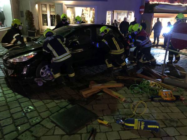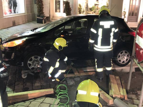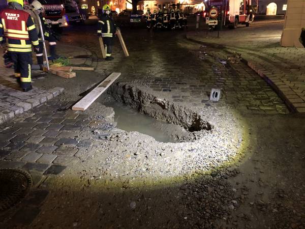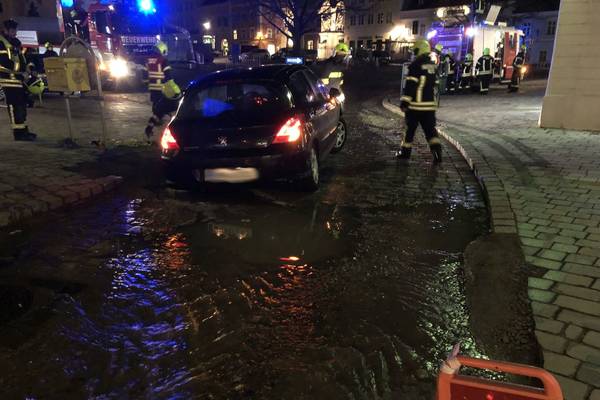 Die Feuerwehr Retz wurde am 10. Jänner 2022 um 18:27 Uhr zu einem technischem Einsatz am Retzer Hauptplatz alarmiert. Ein PKW war aufgrund eines Gebrechens an einer unterirdischen Wasserleitung im aufgeweichten Boden eingesunken.