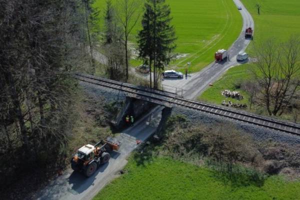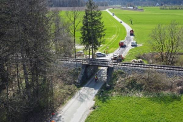 PETTENBACH. Ein Unfall mit einem LKW in Pettenbach (Bezirk Kirchdorf an der Krems) hat Freitagnachmittag einen größeren Einsatz ausgelöst. Die Almtalbahn musste gesperrt werden. Ein LKW touchierte mit seinem Kranaufbau das Unterführungsbauwerk beziehungsweise den Träger der darüberführenden Brücke der Almtalbahn. "Ein 25-Jähriger aus dem Bezirk Kirchdorf an der Krems fuhr am 21. April 2023 gegen 14:35 Uhr im Gemeindegebiet von Pettenbach in der Wengstraße mit einer Zugmaschine unter der Eisenbahnbrücke durch. Dabei achtete er jedoch nicht auf die Höhenangabe und prallte gegen die Brücke. Es wurde eine lokale Umleitung für den Straßenverkehr eingerichtet, der Zugverkehr ist voraussichtlich bis mindestens 24. April 2023 eingestellt", berichtet die Polizei. Dabei wurde durch auslaufendes Öl ein größerer Umwelteinsatz ausgelöst. Die Feuerwehr musste ausgelaufenes Betriebsmittel binden. Zudem wurde ein Hydrologe angefordert, der in Absprache mit der Behörde das Abbaggern von Erdreich anordnete. Ein Baggerunternehmen stand daher ebenso im Einsatz. Neben dem Ölaustritt gab es allerdings auch noch ein größeres Problem beim Brückenbauwerk. Durch den Anprall entstand offenbar ein größerer Riss in einem Eisenträger der Konstruktion. Nachdem mehrere Techniker der ÖBB den Schaden begutachtet haben, wurde entschieden, dass der Zugverkehr vorerst nicht wieder aufgenommen werden kann. Am Montag soll die Unterführung von einem Gutachter begutachtet werden. Bis zumindest Mittwoch bleibt der Streckenabschnitt der Almtalbahn gesperrt, hieß es am Samstag. Die Straße war aufgrund der Baggerarbeiten ebenfalls gesperrt. "Wegen einer beschädigten Brücke durch einen Verkehrsunfall sind zwischen Pettenbach OÖ Bahnhof und Steinbachbrücke Bahnhaltestelle bis voraussichtlich 26.04.2023, 23:00 Uhr keine Fahrten möglich. Wir haben für Sie einen Schienenersatzverkehr zwischen Pettenbach OÖ Bahnhof und Grünau im Almtal Bahnhof eingerichtet", informiert die ÖBB am Samstag.
