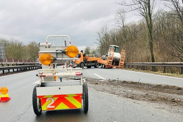 Am Donnerstagmittag ereignete sich auf der BAB 59 zwischen den Anschlussstellen Bonn-Ost und Pützchen in Fahrtrichtung Köln ein Alleinunfall. Beteiligt war ein LKW einer Tiefbaufirma inkl. mitgeführtem Radlader auf Anhänger. Die Meldung über eingeklemmte Personen bestätigte sich nicht. Der Fahrer konnte das Fahrzeug unverletzt verlassen und nach Sichtung durch den Rettungsdienst vor Ort verbleiben. Die Einsatzstelle wurde durch die Feuerwehr abgesichert und im weiteren Verlauf an die Polizei übergeben. Die Bergung wird durch eine Fachfirma durchgeführt.