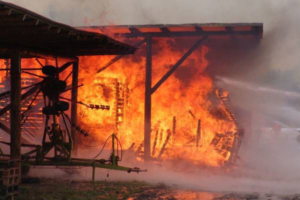 Der 30-jährige Hauseigentümer verständigte gegen 16.00 Uhr die Feuerwehr. Beim Eintreffen der Einsatzkräfte (9 Ortsstellen, 27 Einsatzfahrzeuge, 170 Personen) stand das Wirtschaftsgebäude bereits in Vollbrand. Ersthelfer verbrachten 26 Kühe und 21 Jungstiere sofort ins Freie. Fünf Stiere verblieben im Stall und wurden mit Wasser gekühlt. Aufgrund der vielen vorhandenen Glutnester konnte bislang keine Brandursache ermittelt werden. Bislang gibt es auch noch kein Brand-Aus.
