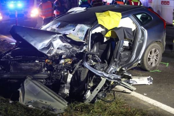 Spektakulärer Unfall: Auto hing nach Unfall auf Welser Autobahn bei Marchtrenk auf der Leitwand