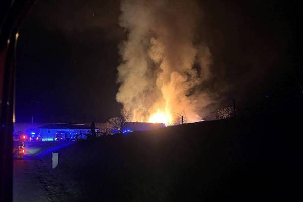 Einsatzkräfte zweier Feuerwehren bei Brand in einem Carport in Bad Wimsbach-Neydharting im Einsatz