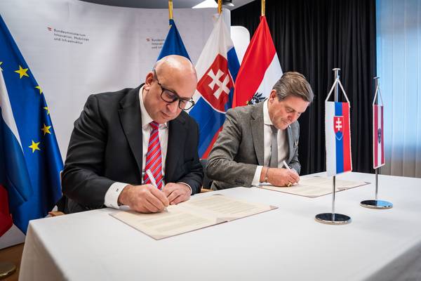 Verkehrsminister Peter Hanke und Amtskollege Jozef Ráž unterzeichnen Absichtserklärung für bessere Verbindungen Wien - Bratislava sowie Ausbau internationaler Schienenkorridore.