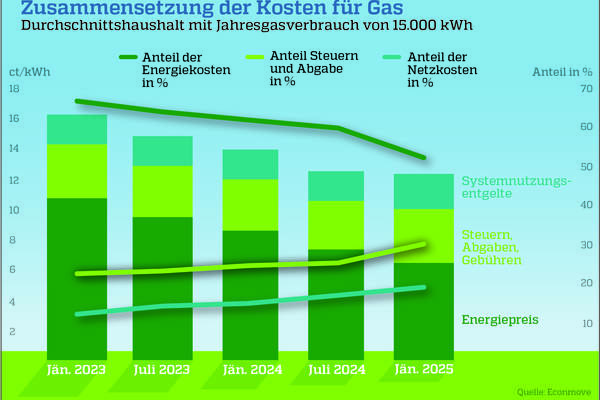 Die Unternehmen der Gaswirtschaft stehen für Versorgungssicherheit. Eine Untersuchung der Gaspreise zeigt: Fast ein Drittel der Kosten sind Erdgasabgabe, Mehrwertsteuer und CO2-Abgabe und gehen auf das Konto des Finanzministers.