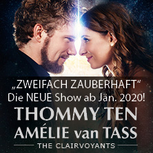 Thommy Ten und Amélie van Tass sind weiter nicht aufzuhalten und präsentieren ihre brandneue Show! Die Weltmeister der Mentalmagie, die Zweitplatzierten der weltgrößten Show America’s Got Talent und Headliner der erfolgreichsten Zaubershow am Broadway, sorgen für Aufsehen – von New York bis Sydney - von Mexiko City bis Singapur und von Las Vegas bis Österreich.