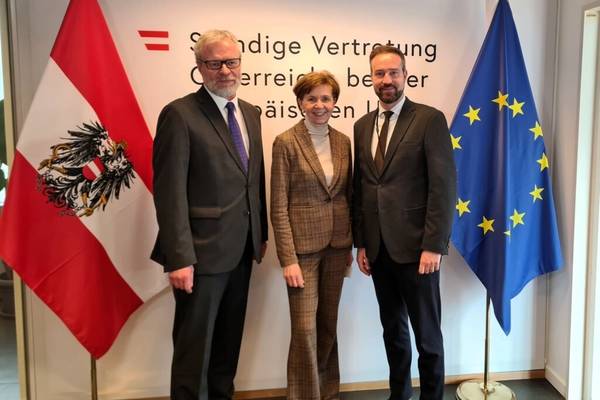 Stefan Schnöll und Brigitta Pallauf bei EU-Kommissar Magnus Brunner / Innere Sicherheit als Thema des Arbeitsgesprächs