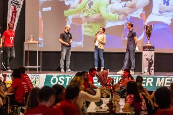 Landeshauptmann gratulierte am Samstag (12. Juni) mit Sportlandesrätin Rüscher dem Meisterteam des ALPLA HC Hard – Feier fand coronabedingt in kleinerem Rahmen statt