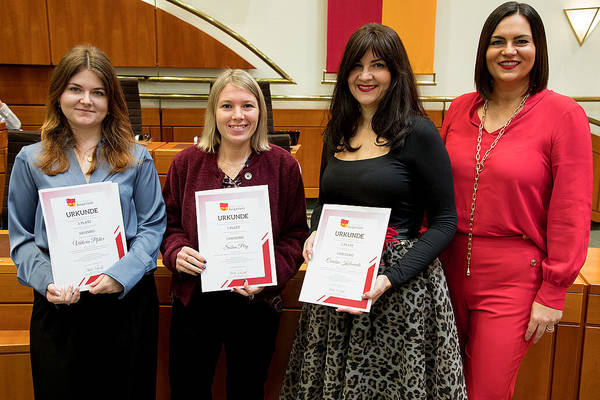 Landeshauptfrau Karoline Edtstadler überreicht Ziviltechniker-Dekrete an Maximilian Kaufmann-Schösswender und Johannes Santner