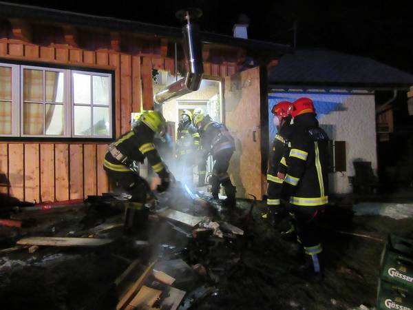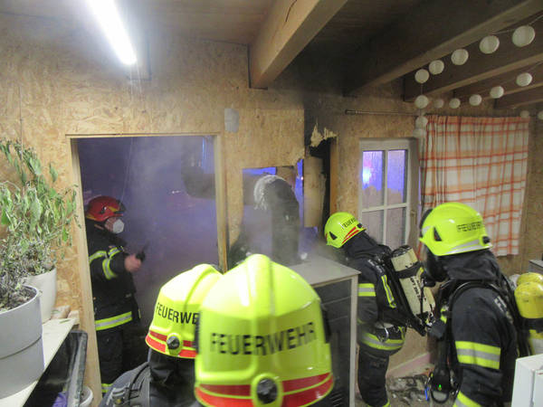 Nachdem der Hauseigentümer den Brand bemerkt selbst hatte, unternahm er mit einem Feuerlöscher erste Löschversuche. Durch die Feuerwehrkräfte mussten Teile der Holzverkleidung entfernt werden um an den Brandherd heranzukommen. Dadurch konnten alle Glutnester gefunden und abgelöscht werden. Der Brand blieb zum Glück auf den Bereich rund um die Rauchdurchführung beschränkt. Damit konnte der Feuerwehreinsatz auch wieder rasch beendet werden.