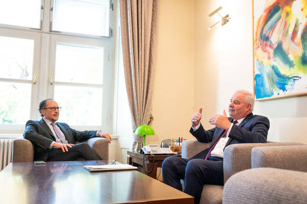 Bundeskanzler Schallenberg erklärt zum Treffen in Graz: „Ich bedanke mich sehr herzlich bei Landeshauptmann Hermann Schützenhöfer für den vertrauensvollen Austausch. Für die aktuellen Herausforderungen, wie insbesondere die Bekämpfung der Corona-Pandemie, bedarf es weiterhin einer engen Abstimmung mit den Bundesländern. Daher bin ich sehr froh ein so gutes Verhältnis mit dem Landeshauptmann zu pflegen und freue mich auf die weiterhin ausgezeichnete Zusammenarbeit mit der Steiermark."