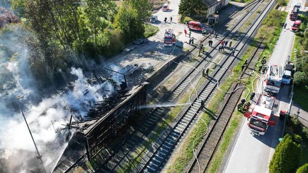 29.09.2024 - Um 14:34 alarmierte die Landessicherheitszentrale mit der höchsten Alarmstufe (B3) zu einem Schuppenbrand auf dem Bahnhofsgelände in Großpetersdorf. Bedingt durch die Alarmierungsordnung rückten neben der Feuerwehr aus Großpetersdorf auch die Kameraden aus Kleinpetersdorf-Kleinzicken sowie die Teleskopmastbühne Oberwart und die Drohnenunterstützung aus Pinkafeld aus. Beim Eintreffen stand der Unterstellschuppen bereits im Vollbrand. Durch einen raschen und bestens koordinierten Einsatz der vorhandenen Kräfte konnte der Brand rasch unter Kontrolle gebracht und schlussendlich gelöscht werden. Die Brandursache wird nun durch die Spezialisten der Polizei ermittelt. Im Einsatz standen die Feuerwehren aus Großpetersdorf, Kleinpetersdorf-Kleinzicken, Oberwart und Pinkafeld mit 60 Mann und 15 Fahrzeugen sowie das Rote Kreuz und die Polizei. Verletzt wurde zum Glück niemand.