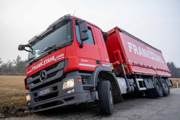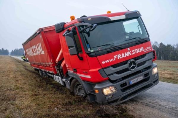 Eggelsberg: LKW im Straßenbankett in Schräglage geraten