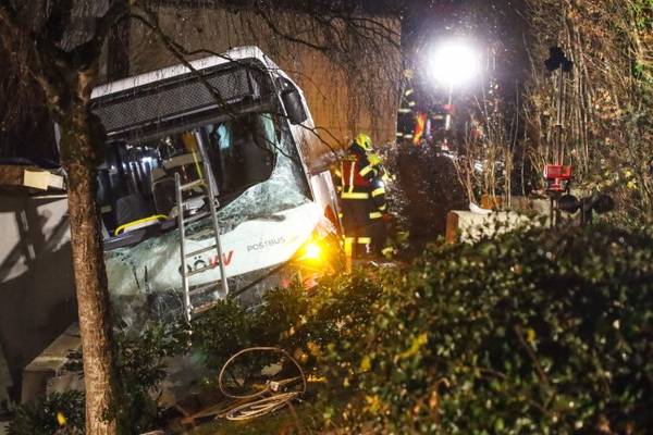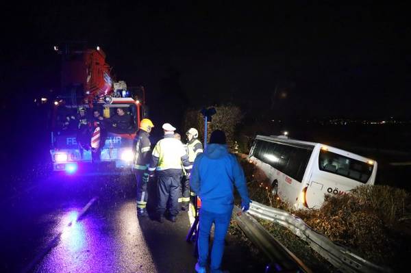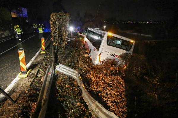 SEEWALCHEN AM ATTERSEE. Ein Linienbus ist Donnerstagnachmittag auf der B151 Atterseestraße in Seewalchen am Attersee (Bezirk Vöcklabruck) von der Straße abgekommen und verunfallt. Der Unfall passierte Donnerstagnachmittag auf der B151 Atterseestraße im Gemeindegebiet von Seewalchen am Attersee. "Eine 48-Jährige aus dem Bezirk Vöcklabruck lenkte am 21. Dezember 2023 einen Bus entlang der B151 Atterseestraße von Attersee am Attersee kommend Richtung Seewalchen am Attersee. Im Bus befand sich ein Fahrgast. Im Gemeindegebiet Seewalchen am Attersee touchierte die Lenkerin mit dem Bus mit der rechten Fahrzeugseite das dortige Objekt. Daraufhin geriet der Bus auf die Gegenfahrbahn und krachte links gegen die Böschungsmauer, woraufhin die Lenkerin mit dem Fahrzeug wieder auf die rechte Fahrbahnseite geriet, dort eine Straßenleitplanke durchbrach und die Böschung zum Atterseeufer hinunterstürzte. Ein Umkippen wurde durch den Anprall gegen ein Gebäude verhindert. Die Bergung sowie die Reinigung der Unfallstelle führten die Freiwilligen Feuerwehren durch. Die Lenkerin als auch eine 53-Jährige aus dem Bezirk Vöcklabruck wurden mit Verletzungen unbestimmten Grades ins Krankenhaus eingeliefert", berichtet die Polizei. Die Einsatzkräfte der Feuerwehr befreiten die zwei Personen, die sich im Bus befanden über die Windschutzscheibe aus dem Fahrzeug. Zur Bergung wurde das Kranfahrzeug der Feuerwehr angefordert und in weiterer Folge ein weiteres Kranfahrzeug. Die B151 Atterseestraße war bis am späten Abend gesperrt.