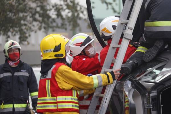 Wels: Menschenrettung nach schwerem Verkehrsunfall in Wels-Vogelweide