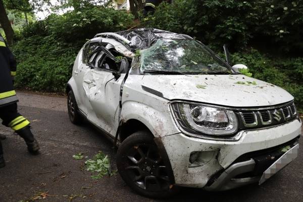 Eidenberg : PKW bei Unfall während Ausbildungsfahrt über Böschung gestürzt