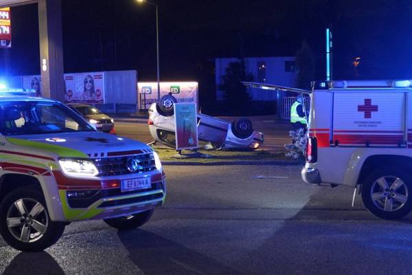 WELS. Zwei Schwerverletzte hat am späten Montagabend ein schwerer Verkehrsunfall auf der B1 Wiener Straße in Wels-Lichtenegg gefordert. Ein Auto hat sich dabei überschlagen. Der Unfall ereignete sich im Kreuzungsbereich der B1 Wiener Straße, Salzburger Straße mit der Noitzmühl- und Primelstraße im Welser Stadtteil Lichtenegg. Der genaue Unfallhergang war vorerst noch unbekannt. Ein Fahrzeug dürfte im dortigen Kreuzungsbereich jedoch offensichtlich dann auf den Geh- und Radweg und den dahinterliegenden Grünstreifen gelangt sein. Nach einer Kollision mit mehreren teils massiven Betonsockeln und einem Plakatständer hat sich das Fahrzeug dann offenbar heftig überschlagen und kam seitlich direkt neben einer Tankstelle am Dach liegend zum Stillstand. Augenzeugen eilten den eingeschlossenen Personen zu Hilfe. Die zwei Insassen konnten von Ersthelfern sofort aus dem Unfallwrack befreit und erstversorgt werden. Zwei Notarztteams versorgten die Verletzten, die dann in umliegende Krankenhäuser gebracht wurden. Ein Hund, der sich im Auto befunden hatte, wurde von Ersthelfern ebenfalls befreit und anschließend in eine Tierklinkik zur weiteren Versorgung gebracht. Die Feuerwehr wurde dann ebenso wie der Abschleppdienst zur PKW-Bergung alarmiert. Das Auto wurde vom Abschleppunternehmen wieder auf die Räder gestellt und aufgeladen. Die Feuerwehr band ausgelaufene Betriebsmittel und führte umfangreiche Aufräumarbeiten an der Unfallstelle durch. Die B1 Wiener Straße, Salzburger Straße war in Fahrtrichtung stadtauswärts für rund eine Stunde gesperrt beziehungsweise erschwert passierbar. "Am 12. Mai 2025 gegen 22:45 Uhr fuhr ein 26-Jähriger aus dem Bezirk Wels-Land mit seinem Auto auf der Salzburger Straße in Richtung stadteinwärts und beabsichtigte die Kreuzung mit der Noitzmühlstraße in gerader Richtung zu überqueren. Am Beifahrersitz befand sich sein Freund, ein ebenfalls 26-Jähriger aus Wels. Am Rücksitz befand sich der Hund des Beifahrers. Der Lenker fuhr sein Auto laut einem 26-jährigen Zeugen mit weit überhöhter Geschwindigkeit bei grün blinkendem Licht der Ampel in die Kreuzung ein und kam aus bislang unbekannter Ursache nach links von der Fahrbahn auf den dort befindlichen Grünabschnitt der Turmöltankstelle ab. Dabei kollidierte er zuerst seitlich mit der Wand der Waschbox und in Folge mit einem Betonpoller. Durch die Kollision mit dem Betonpoller überschlug sich das Auto und kam auf dem Dach nächst einer Zapfsäule zum Liegen. Der Lenker, der Beifahrer, sowie der Hund konnten sich selbständig aus dem Fahrzeug befreien. Der Lenker wurde mit der Rettung ins Klinikum Wels und der Beifahrer ins UKH Linz verbracht. Beide wurden unbestimmten Grades verletzt. Der Hund wurde einem Bekannten des Beifahrers übergeben und wurde ebenfalls verletzt." Polizei Oberösterreich, Presseaussendung