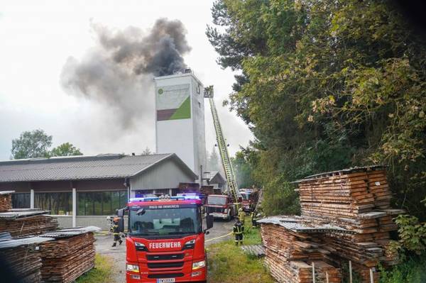 HOHENZELL. Neun Feuerwehren standen Donnerstagnachmittag bei einem Silobrand bei einer Tischlerei in Hohenzell (Bezirk Ried im Innkreis) im Einsatz. Eine dunkle Rauchsäule stand am frühen Nachmittag über dem Betrieb nachdem es im Silo der Tischlerei zu einem Brand gekommen ist. "Am 17.September 2020 gegen 14:25 Uhr kam es während der Arbeitszeit im Spänesilo einer Firma in Hohenzell zu einem Brandausbruch. Der Brand im Spänesilo konnte durch den Einsatz von insgesamt neun Feuerwehren rasch unter Kontrolle gebracht und ein Übergreifen auf Gebäudeteile verhindert werden. Um eine erneute Brandentstehung im Spänesilo zu verhindern, werden die im Silo eingelagerten Späne durch die eingesetzten Feuerwehren ausgeräumt. Laut Geschäftsführer dürften im Spänesilo etwa 150 m³ Späne eingelagert sein. Die Höhe des Sachschadens ist noch nicht bekannt. Die Erhebungen zur Brandursache laufen", so die Polizei. Ein Großaufgebot von neun Feuerwehren stand im Einsatz. Verletzt wurde niemand. "Die Brandstelle wurde Freitagnachmittag von einem Sachverständigen der Brandverhütungsstelle für Oberösterreich gemeinsam mit dem Bezirksbrandermittler der besichtigt. Dabei konnte festgestellt werden, dass über die Absauganlage glühende Holzspäne in das Spänesilo gelangten und dort die eingelagerten Späne entzündet haben", so die Polizei am Freitagabend zu Brandursache.