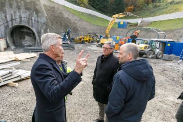 Quasi nebenan laufen seit Mitte September die Arbeiten am Erkundungsstollen Altstadt. Nach Abschluss des so genannten Voreinschnitts wird in den kommenden Tagen der Anschlag des Tunnels erfolgen. „Voraussichtlich bis Ende März entsteht nun im Sprengvortrieb der rund 250 Meter lange Sondierstollen“, erklärte Schnitzer. „Er wird uns nicht nur wertvolle geologische Erkenntnisse für den Bau des Haupttunnels liefern, sondern später auch zu einem Flucht- und Wartungstunnel ausgebaut.“ Ab dem kommenden Frühjahr erfolgt in Tisis, am künftigen Portalstandort des dortigen Erkundungsstollens, die Baustelleneinrichtung. Im Sommer 2022 fällt der Startschuss für den etwa 1.200 Meter langen Erkundungsstollen Tisis. „Wir gehen davon aus, dass dann Ende 2023 die Arbeiten am Haupttunnel beginnen werden“, so der Straßenbauchef. Geplante Fertigstellung ist 2030.