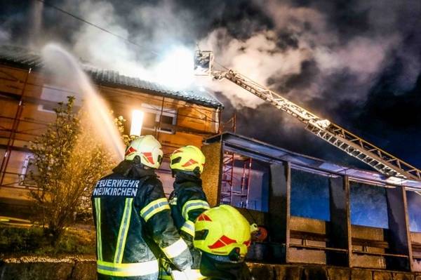 Fünf Feuerwehren bei Dachstuhlbrand an einem Wohnhaus in Neukirchen an der Enknach im Einsatz