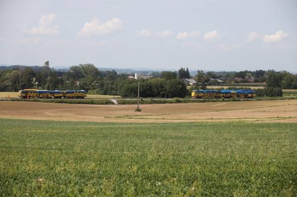 KREMSMÜNSTER/PETTENBACH/RIED IM TRAUNKREIS. Auf Hochtouren liefen Freitagnachmittag in Pettenbach (Bezirk Kirchdorf an der Krems) die Reparaturarbeiten der Unwetterschäden an der Almtalbahn. Die Strecke der Almtalbahn war zwischen Pettenbach und Ried im Traunkreis an gleich vier Stellen unterspült beziehungsweise mit Schlamm überspült worden. Der Gleisschotter wurde dabei auf angrenzende Wiesen und Felder geschwemmt. Der Starkregen und Schlamm aus angrenzenden Feldern überschwemmte die Bahnstrecke im Nahbereich des Wilfing- und Aiterbachs. Seit Dienstag laufen die Arbeiten an der Wiederherstellung der Bahnstrecke. Am Freitag stand dabei unter anderem eine Stopfmaschine im Einsatz, die die Schienen im Gleisbett wieder in die richtige und eine sichere Lage brachte. Die ÖBB rechnet damit, dass der Schienenersatzverkehr zwischen Voitsdorf und Grünau im Almtal ab Samstag wieder aufgehoben werden kann. Hingegen länger gesperrt bleiben der Bahnübergang und die Kremsegger Straße in Kremsmünster. Dort unterspülte der Kremsegger Bach am Montagabend die Straße, der Abschnitt von rund 100 Metern muss vermutlich mit größerem Aufwand saniert werden.