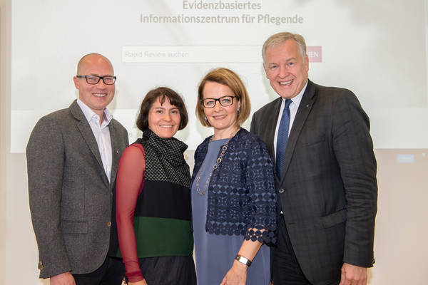 Das „Informationszentrum für Pflegende“ an der Donau-Universität Krems, das kürzlich offiziell die Arbeit aufgenommen hat, stand im Zentrum einer Pressekonferenz, bei der Landesrätin Christiane Teschl-Hofmeister, Landesrat Martin Eichtinger, Martin Fangmeyer vom Zentrum Cochrane Österreich und Anna Glechner vom Department Evidenzbasierte Medizin & Evaluation über die neuen Angebote für Mitarbeiterinnen und Mitarbeiter in den Kliniken informierten.