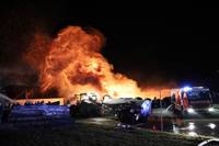 Herzogsdorf: 14 Feuerwehren bei Großbrand einer Lagerhalle im Einsatz