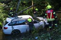 Hofkirchen an der Trattnach: Auto bei Verkehrsunfall in die Trattnach gestürzt