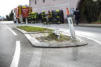Oftering: Kleintransporter fuhr bei Verkehrsunfall über Verkehrsinsel