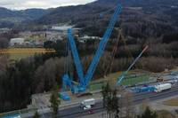 Ohlsdorf: Spektakuläre Hubarbeiten mit Riesenkran bei Abriss der alten Aurachbrücke auf Westautobahn im Einsatz