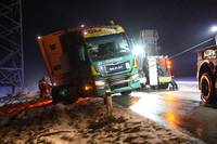 Pennewang: Drohte umzustürzen - Sattel-LKW mit 15 Tonnen Tiefkühlpizza in Straßengraben gerutscht