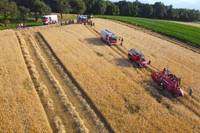 Mähdrescher bei St. Marienkirchen an der Polsenz über abschüssiges Feld in einen Wald gedonnert