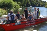 Stadl-Paura: Personenrettung - Person mit Einsatzboot der Feuerwehr aus der Traun gerettet