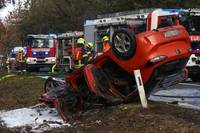 Stadl-Paura: Schwerer Verkehrsunfall - Insassen nach Autoüberschlag allesamt unverletzt