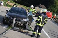 Ungenach : Auto bei Verkehrsunfall auf Hausruckstraße auf Fahrbahnteiler gelandet