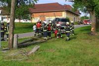 Ungenach : Leitungen lagen auf Auto - PKW bei Verkehrsunfall gegen Strommast und Baum geprallt