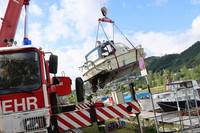 Vichtenstein: Bergung eines Motorbootes – Sportboot im Hafen gekentert