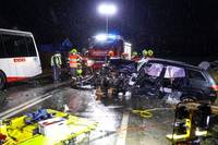 Wilhering: Kollision mit Linienbus - Drei teils Schwerverletzte bei Unfall auf Eferdinger Straße