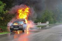 Freitagmittag, 10. März 2023, geriet während der Fahrt ein Pkw in Brand. Verletzt wurde niemand.